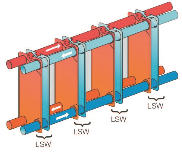 江蘇冰克LSW系列半焊板式換熱器在工作過程可以保證流道間全部的隔離,臨界媒質在焊接密封后的流道中流動,將熱傳給另一側的普通媒介,沒有這種嚴格隔離設計,許多工業過程將無法實現。